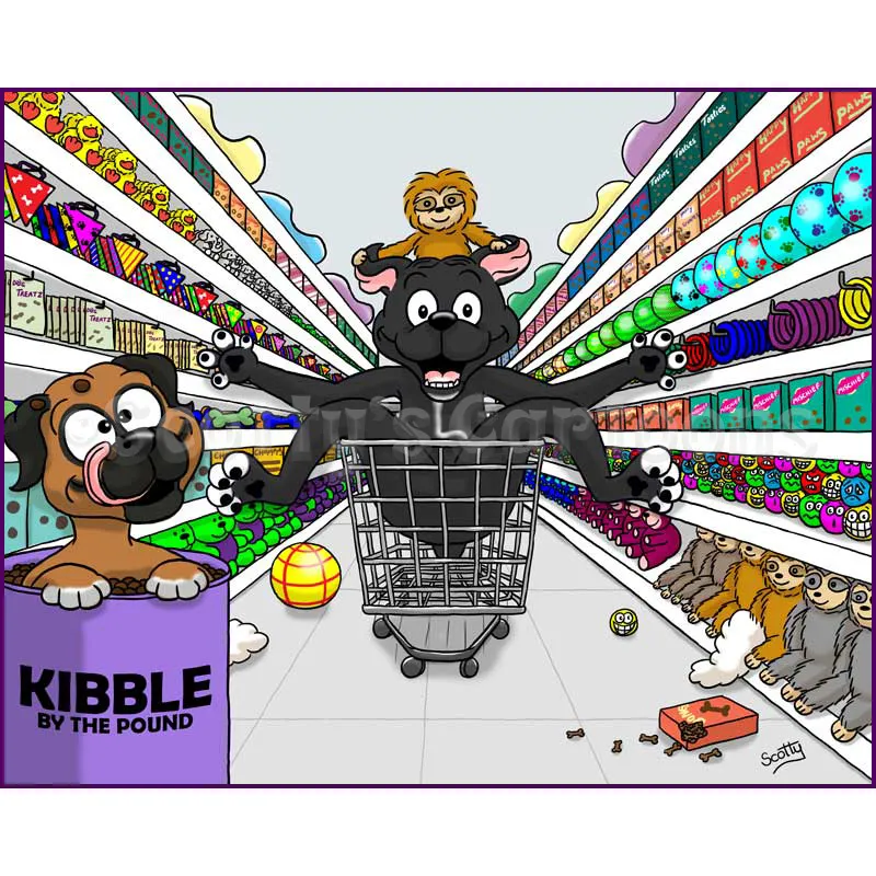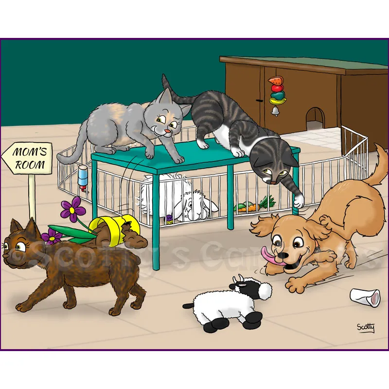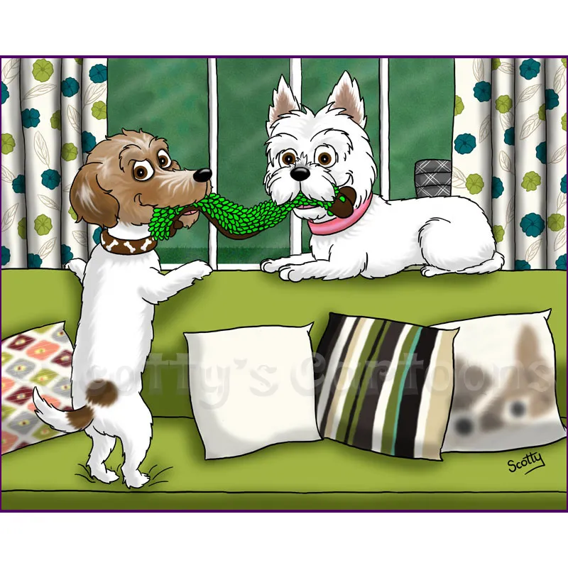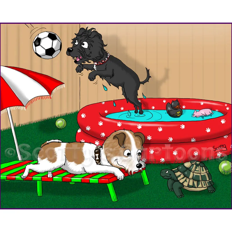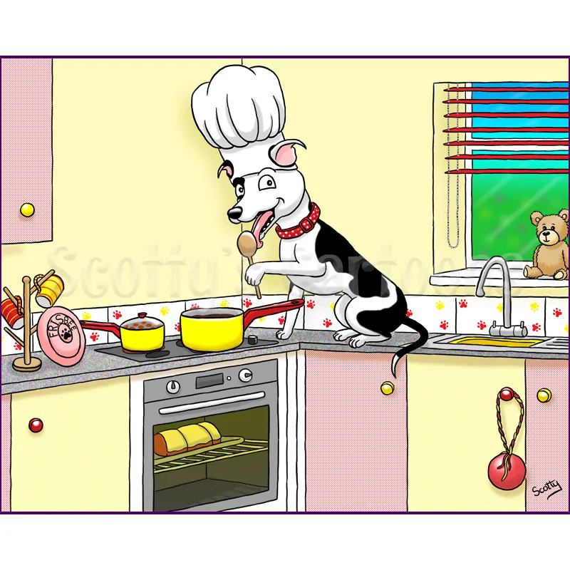 I can make some minor amendments to the cartoon if you’re not completely satisfied, although major changes may incur an additional fee. To date, (and touch wood!) I have never had a dissatisfied pet portrait scene client.