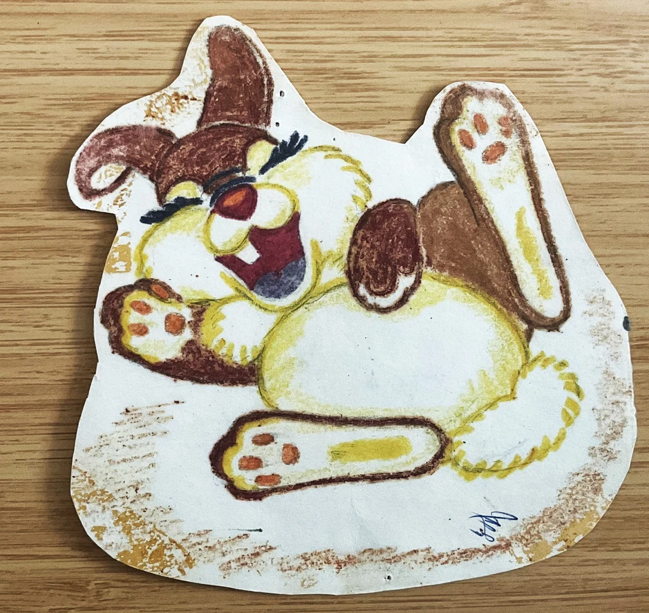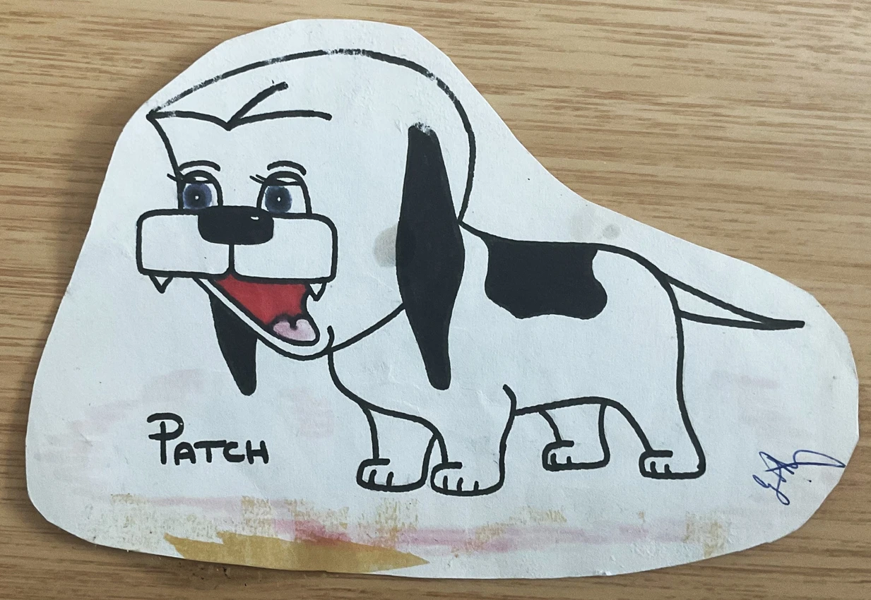 He even made up a few characters of his own, with Patch the dog, Gercha the rabbit, and Egbert the Lion, being three of my favourites. I cut around each cartoon that he drew, and stuck them on my wall or wardrobe door with double sided tape (sorry Mum and Pops, for the paintwork in my room!) As a result, these drawings have become a bit battered over the years, but they are 30 (ish, ahem) years old, so a little wear and tear is to be expected, like an old beloved teddy bear.