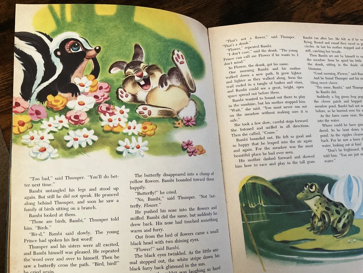 My parents bought my sister and I "Walt Disney's GIANT Story Book", a thick book of original Disney stories with illustrations beside each story. I loved it, and still do. It sits on a shelf opposite me while I work each day.